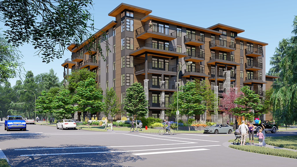 Developed by Northstar Development and designed by RH Architects, this six-storey wood-frame building will deliver 108 market homes, with construction management by Edge Construction.